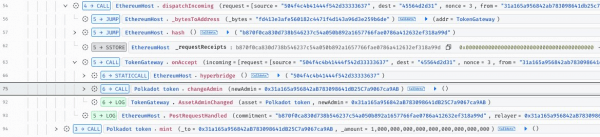 В CertiK заявили, что хакеру удалось создать токены после того, как он «пропустил поддельное сообщение о смене администратора контракта токена Polkadot на Ethereum». Однако недостаточная ликвидность мостового пула DOT Эфириума была перегружена 1 миллиардом мостовых токенов DOT, в результате чего после обмена прибыль злоумышленника сократилась до 108,2 эфира (ETH) на сумму около 237 000 долларов США.