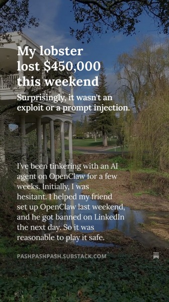 «Сказал ему не делать ошибок», — сказал Паш, который создал X-аккаунт для Lobstar Wilde, чтобы документировать его путешествие.