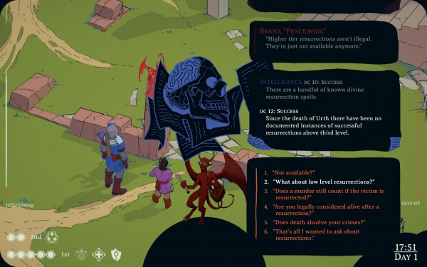 Оба главных источника вдохновения в итоговом релизе видны невооруженным взглядом. С одной стороны: типичные D&D-характеристики, фэнтезийный сеттинг, прокачка, классы, расы, заклинания, циферки, обязательные броски двадцатигранного кубика и стилизация под застольные посиделки с гейм-мастером. С другой стороны: интроспективность, вклинивающиеся в диалоги «статы» со своими голосами, детективная интрига, амнезия главного героя, заметный уклон в политику и ОЧЕНЬ МНОГО ТЕКСТА.