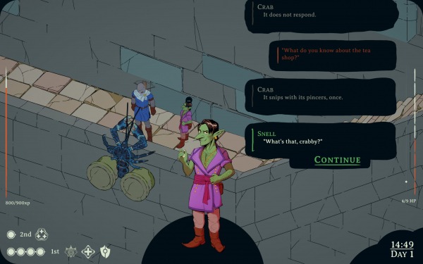 Впрочем, удастся вам проникнуться местными историями или нет — это напрямую зависит от того, насколько вам зайдет стиль текста Кристоффера. Он у него, все-таки, несмотря на все подражания, есть. И куда больше, чем Planescape: Torment и Disco Elysium тяготеет к легкой иронической фэнтезийной комедии. Предположительно, автор в идеале видит себя этаким Терри Пратчетом от мира видеоигр, но за остроумием самого Пратчета поди еще угонись.