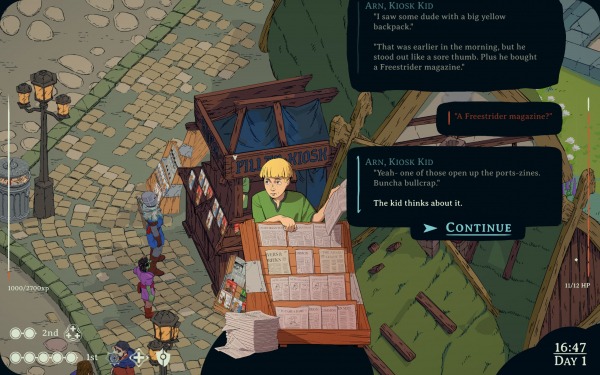 При всем этом Esoteric Ebb не может добиться такого эмоционального диапазона и глубины, как трагикомичная Disco Elysium. И в отличие от той же Zero Parades, как будто и не стремится. Взять хоть политическую тему. В Disco Elysium политика была встроена в историю угасающего города и каждого его жителя, рисуя душераздирающую картину того, как утратившие силу идеологии способны выжечь человека изнутри и снаружи. Здесь политика это просто часть мира, еще один повод для пошутеек и возможность для автора немного потранслировать собственные взгляды. Хотя ограничений в отыгрыше это не создает: захотите быть честным фашистом, расистом и женоненавистником — бог вам судья. Сами выбирайте, какой, их тут много.