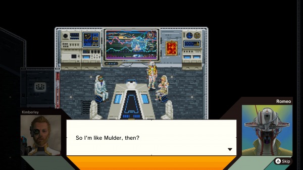 При этом большую часть времени разработчики пытаются скрыть тотальное отсутствие денег. Из-за чудовищно, просто ужасающе плохой лицевой анимации виртуальный оператор старается выбирать ракурсы без двигающихся ртов — а когда это не удается, хоррор получается еще тот. Все диалоги с командой стилизованы под общение в духе JRPG с тонной графомании. Ну, спасибо хоть за кнопку быстрой промотки, что тут сказать.