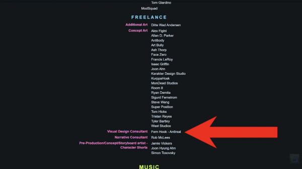 В титрах игры Ферн значится как «консультант по визуальному дизайну». Сложно сказать, сколько работы Ферн вошло в игру. Но по крайней мере она явно получила некоторую компенсацию за свои труды и нанесенный ей плагиатом ущерб.