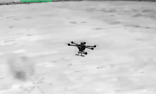 Третий БПЛА ВСУ был сбит с помощью разведывательного квадрокоптера со сбросом. Во время разведывательно-боевого вылета оператор заметил, как грузовой дрон противника производит бомбометание по передовым позициям российских подразделений, сбрасывая 82-мм мины. Российский оператор подлетел к вражескому БПЛА сверху и точным сбросом гранаты поразил цель. Сбитый аппарат упал на землю.