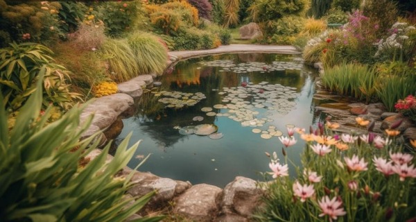 - английский сад — пышные цветники и естественность;