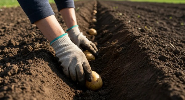Считается, что лучше всего сажать картофель в солнечный день с ясным небом и легкими облаками.