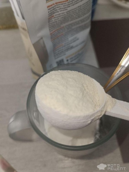 Затем — мерную ложку протеина (это около 15 грамм, половина рекомендованной для протеинового коктейля порции).