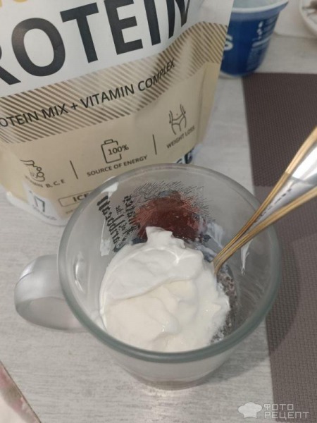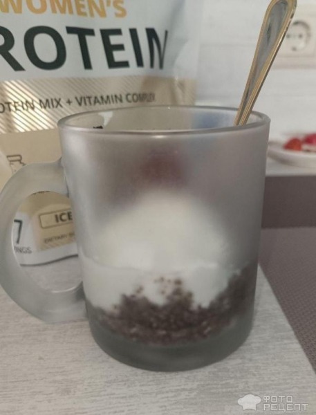 Протеин я купила несколько месяцев назад — добавляю в выпечку, иногда в овсянку, изредка — протеиновый коктейль, чаще вот в такой ПП-десерт.