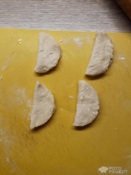 6. Затем складываю кружочек пополам, чтобы яйцо и сахар остались внутри Получаются вот такие формы, похожие на луну.