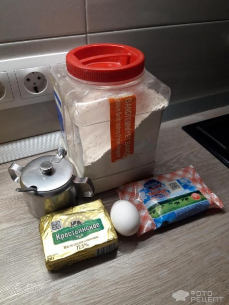 Для приготовления потребуется творог, масло сливочное, мука и немного сахара, соли и одно яйцо.