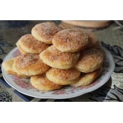 Одну сторону кружочка макаю сначала в яйцо, а затем обмакиваю сахаром, только одну сторону.